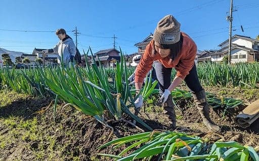 特産品は「岩津ねぎ」が有名です。白ねぎと青ねぎのちょうど中間種で、青葉部分から白根まで大変柔らかく甘みがあり、すべて余すところなく食べられるのが特長です。