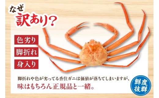 チョイスランキング1位獲得(カニ部門週別 2023.2.14)大人気商品です!【訳あり 香住ガニ 釜茹で ボイル 大きめ 約600g×3匹(約1.8kg以上)冷蔵】入金確認後、順次発送予定 大人気 人気 ふるさと納税 返礼品 おすすめ 注意書きの確認を必ずお願いします 国産 本場 香住 兵庫 香美 1~2本足折れ ベニズワイガニ かに カニ 蟹 20000円 日本海フーズ 07-14