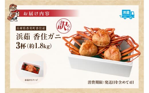 チョイスランキング1位獲得(カニ部門週別 2023.2.14)大人気商品です!【訳あり 香住ガニ 釜茹で ボイル 大きめ 約600g×3匹(約1.8kg以上)冷蔵】大人気 人気 ランキング おすすめ 国産 しゃぶ かにみそ かにすき かに鍋 本場 香住産 兵庫県 香美町 日帰り漁 鮮度抜群 紅 べに ずわいがに ベニズワイガニ カニ かに 蟹 脚 爪 ふるさと納税 返礼品 KMG WKA 日本海フーズ 20000円 07-14