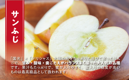 サンふじは甘み・酸味・歯ごたえの三拍子が揃った人気の品種です。