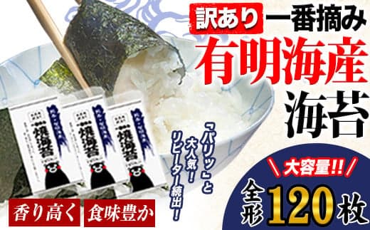 より香り高く、食味豊か!「一番摘み」のみを厳選出荷!!海苔 訳あり 一番摘み 有明海産 海苔 120枚 熊本県産( 有明海産 ) 海苔 全形 40枚入り×3袋 小分け 《45日以内に出荷予定(土日祝除く)》海苔 のり 海苔 のり 海苔 訳あり海苔 訳ありのり 小分け海苔 小分けのり