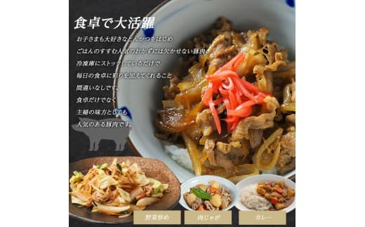 鹿児島県産豚肉を使用し、炒め物、焼きそば、カレー等、色々な料理に最適な商品です。