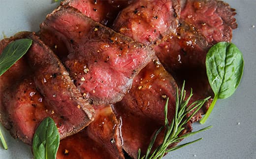 ローストビーフは火入れが最も重要なポイントです。真空調理で完璧な温度管理のもと低温でじっくりと火を通し、休ませることで肉汁を逃しません。使用する部位はモモやウデなどローストビーフに適した赤身から厳選します。ご家庭ではなかなか難しい、低温真空調理で一流レストランの味を再現した人気のローストビーフです。