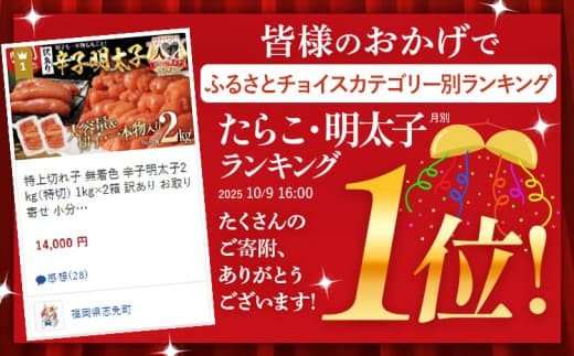 本場博多の無着色辛子明太子 訳あり ですがワンランク上の贅沢な明太子特上切れ子 無着色 辛子明太子2kg(特切) 1kg×2箱 訳あり お取り寄せ 白ワイン わけあり 切れ子 切子 めんたいこ お取り寄せグルメ 博多 福岡 お土産 ギフト 海鮮 業務用 たっぷり HACCP認定